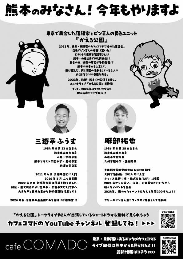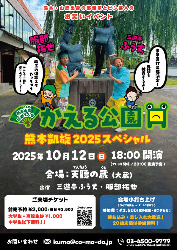 三遊亭ふう丈・服部拓也 同郷二人会 『かえる公園 熊本・山鹿凱旋2025~落語家とピン芸人のお笑いライブ~』