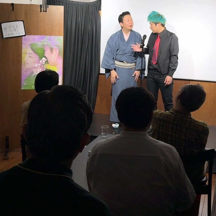 東京で約25年ぶりの再会を果たした、山鹿出身の同じ小学校だった落語家とピン芸人によるお笑いイベント