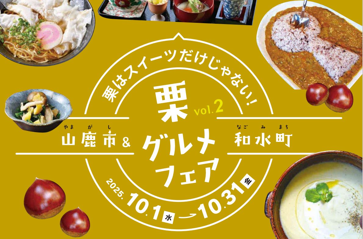 10月1日㈬~31日㈮までのあいだ、山鹿市と和水町で「和栗」の食事を堪能できるフェアです。